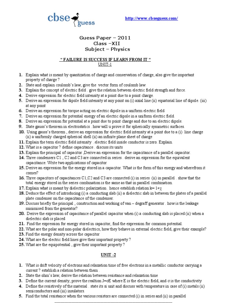 Important Derivations In Physics Class 12 Cbse Pdf